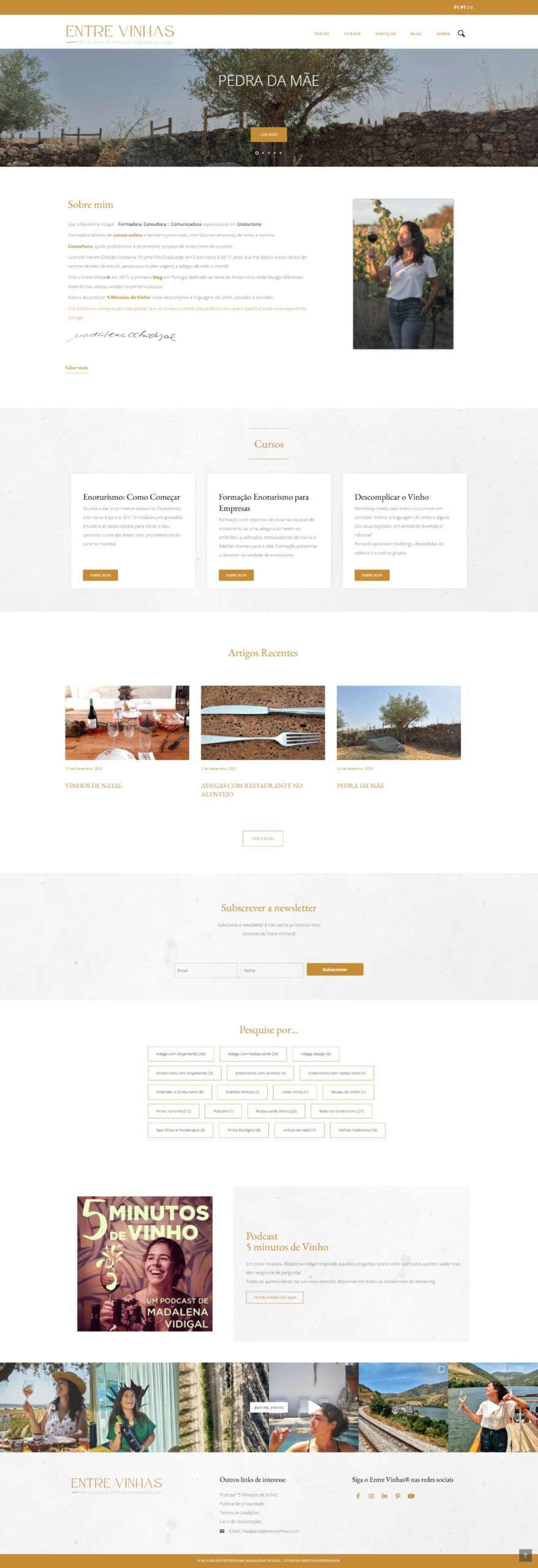 O Entrevinhas passou a funcionar como um site alinhado com o momento atual do projeto. A oferta de serviços ficou clara, a navegação mais intuitiva e o design mais coerente e moderno.